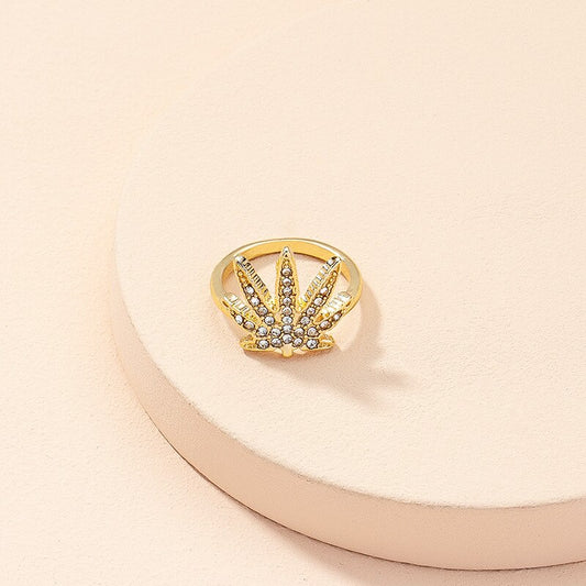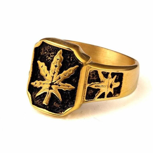 Bague Cannabis <br> Feuille de Cannabis Dorée